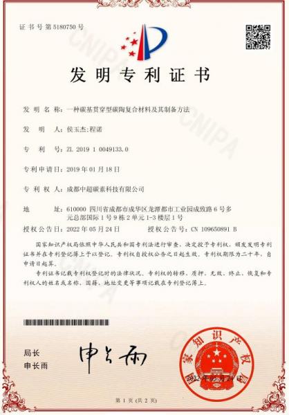 成都中超碳素科技有限公司取得機(jī)械用碳材料制備兩項(xiàng)專利 成都中超碳素科技有限公司取得機(jī)械用碳材料制備兩項(xiàng)專利