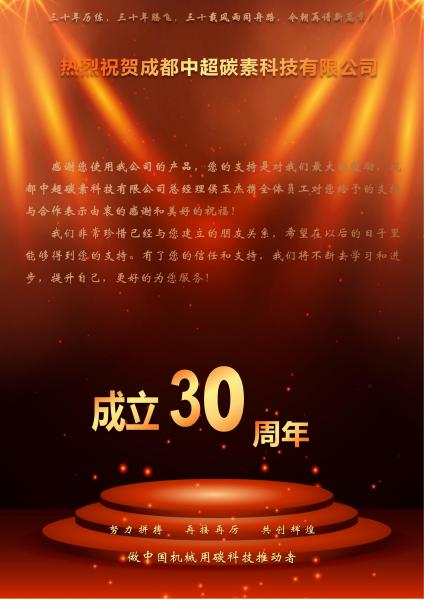 祝賀成都中超碳素科技有限公司成立三十周年 祝賀成都中超碳素科技有限公司成立三十周年